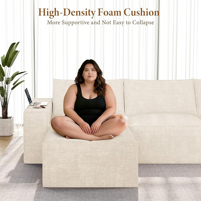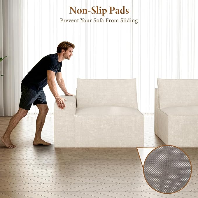 - Flexible Modular Design: The L-shaped sectional sofa has 4 separate sections. Each module can be easily moved and reassembled into loveseat, L shaped sofa, chaise lounge, sleeper sofa, or oversized family sectional couch to match your lifestyle. The modular design allows you to freely create your ideal layout and adapt to ever-changing spaces. All modular seats have a anti-slip design on the bottom to prevent the sofa from sliding during daily use