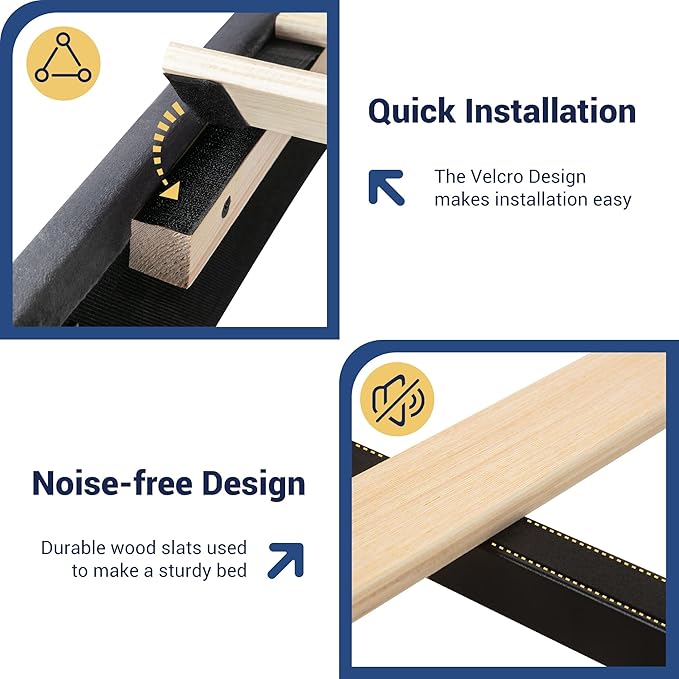 - Elegant Upholstered Design: Wrapped in premium velvet fabric with vertical tufted design, this platform bed frame adds comfort and sophistication. The padded headboard provides excellent back support for reading or watching TV