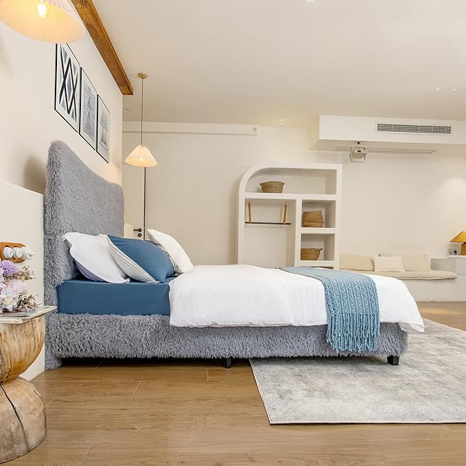 - Fluffy Texture: Crafted from premium faux fur fabric, brafab cloud bed frame offers a velvety-smooth feel that's even more plush and soft than ordinary Boucle fabric, delivering ultimate comfort for both sight and touch. It will become your perfect cozy retreat for unwinding and enjoying a good read during chilly winter months.