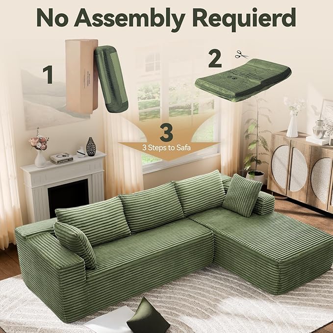 - Configure Your Dream Space: This modern modular sectional sofa offers limitless L-shape layouts to perfectly fit your living room, apartment, or game room. With its innovative boneless, no-assembly design, your new couch unfolds from the box – simply pat it fluff, and it's ready to use in hours, not days