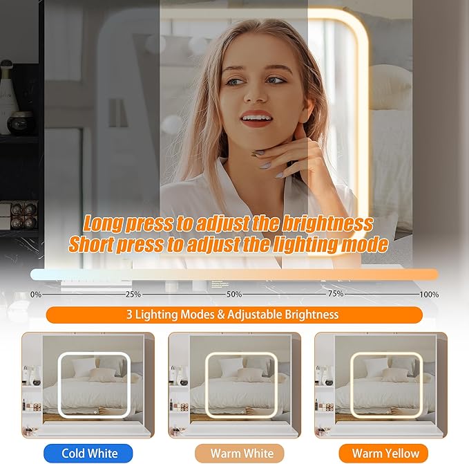 - Intelligent 3 Mode LED Lighting: Elevate your routine with our sleek vanity desk with sliding mirror, complete with a responsive touch-controlled LED mirror. Gently long press to adjust brightness levels, and easily change between warm, cool, and daylight tones to achieve flawless makeup application from every angle or organize your cosmetics with a little push to the mirror.