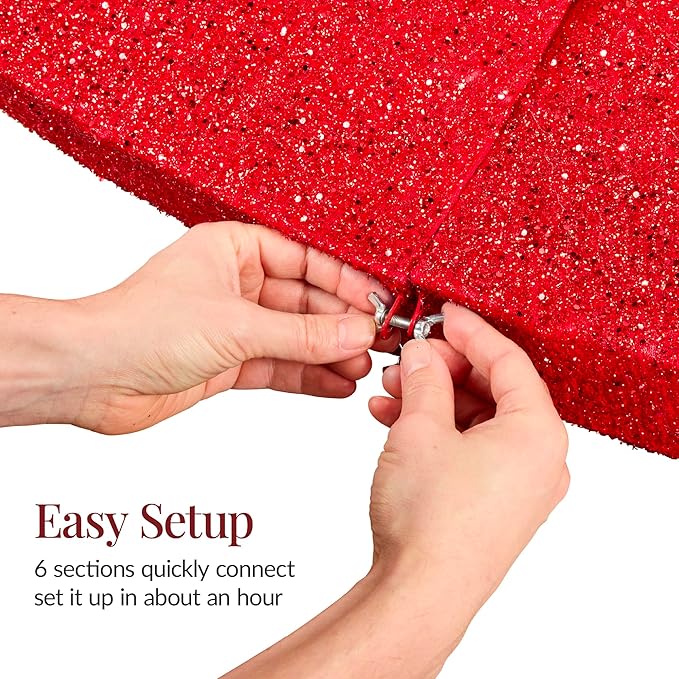 - WEATHER-FRIENDLY DESIGN: Shimmering durable fabric sits on a powder-coated wire frame to withstand the elements for many holiday season, with optional rope and ground stakes are included for added support in windy weather; OVERALL DIMENSIONS: 114" (L) x 24" (W) x 120" (H)