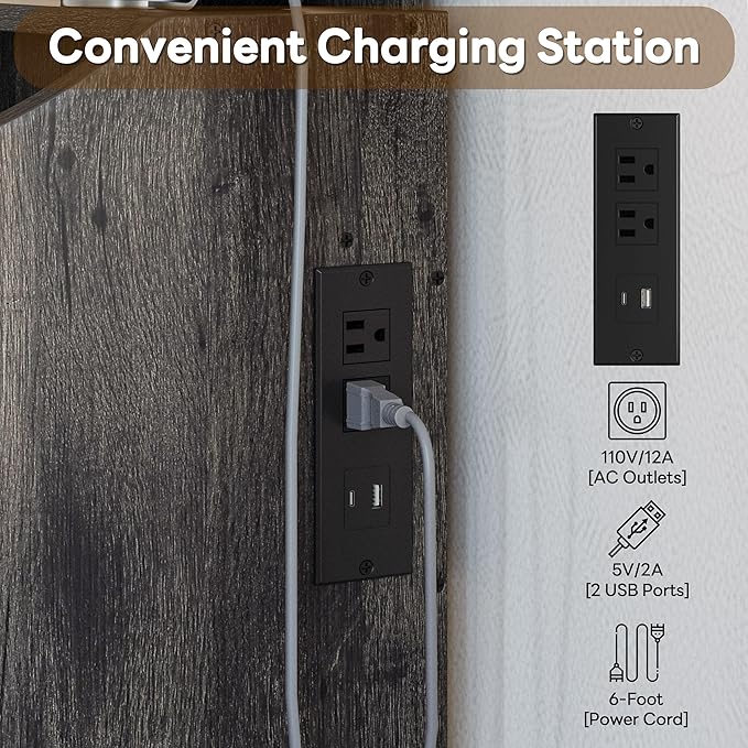 - Stylish and Versatile: Equipped with a charging station, convenient for charging hair dryers, mobile phones and other devices, Its smooth curved design is safe and adds a touch of elegance and sophistication to your bedroom