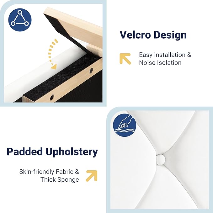 - Noise Free Bed Frame:Queen size bed frame with padded upholstered headboard complements any decor. EVA mute bars and quality construction prevent squeaks for quiet, hassle-free use