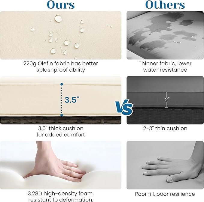 - 【Easy to Assemble & Maintain】Clear step-by-step instructions and all necessary hardware are included for quick assembly. The cushion covers feature smooth zippers for easy removal and machine washing, while the handwoven rattan surface wipes clean effortlessly—keeping your set fresh with minimal effort.