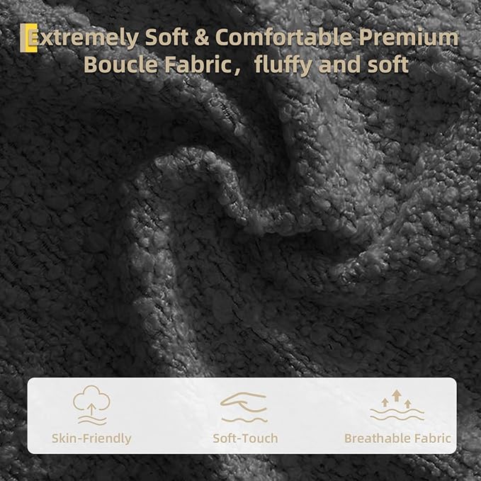 - Fluffy Boucle Fabric: This queen size bed frame is upholstered in a cloud-like terry fabric that is soft to the touch while providing a fluffy texture. This soft upholstered bed frame fills your home with warmth and calm