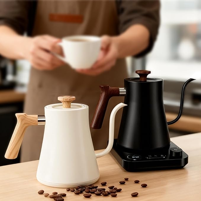 Gooseneck electric kettle,Auto Boil Detection, with Variable Temperature Control, Stainless Steel Inner, Ultra-Quiet 304 Stainless Steel,1200W Quick Heating, for Coffee, Tea & Milk, 0.9L
