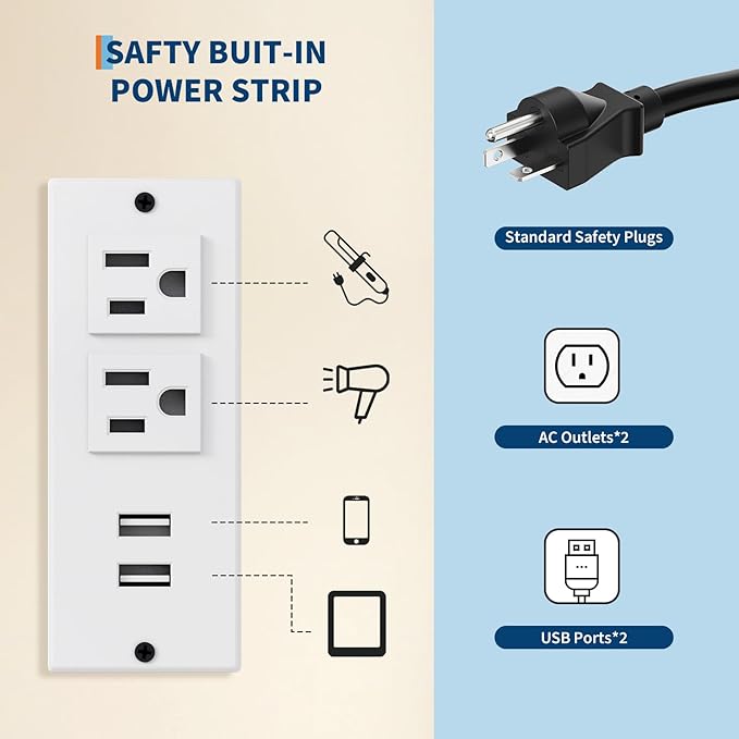 • Convenient Charging Station: This dressing table includes a built-in charging station with two AC outlets and two USB ports, allowing you to easily charge your devices while getting ready, combining beauty with practicality for your busy lifestyle