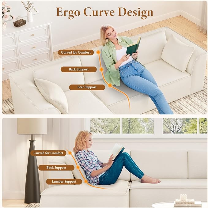 - Space-Savvy Modular Comfort: Engineered for space-conscious living, this versatile fluffy sofa adapts seamlessly to any environment—from compact apartments to family rooms and small living spaces. Its innovative legless, minimalist design fits various decor styles, making it a versatile addition to different living spaces. For convenient delivery, the foam couch ships in two separate boxes (which may arrive at different times). Your satisfaction is guaranteed—should the product not meet your expectations, our dedicated customer service team will promptly provide a satisfactory resolution