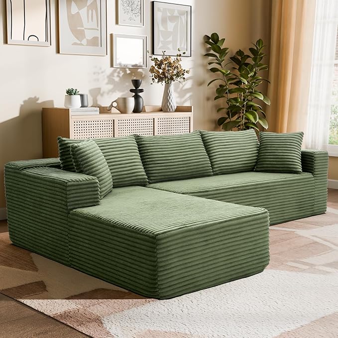 - Configure Your Dream Space: This modern modular sectional sofa offers limitless L-shape layouts to perfectly fit your living room, apartment, or game room. With its innovative boneless, no-assembly design, your new couch unfolds from the box – simply pat it fluff, and it's ready to use in hours, not days