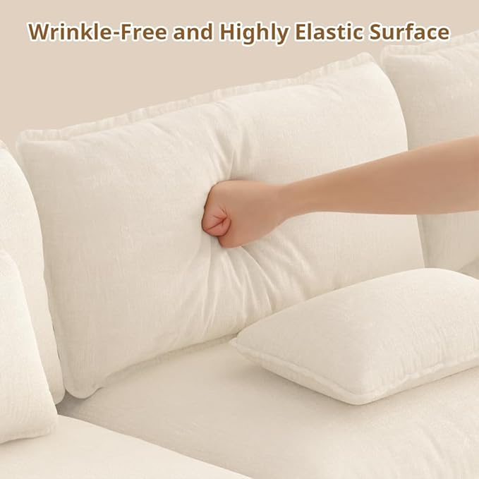 - 【Cloud Couch】The sofa couch is wrapped in premium chenille fabric that feels soft,gentle on the skin, and easy to maintain.Its thick cushions are filled with a high-resilience dual-layer sponge and fluffy padding to create a cloud-like sitting experience.Perfect for lounging,reading,or entertaining guests,this cloud couch offers ultimate relaxation in style