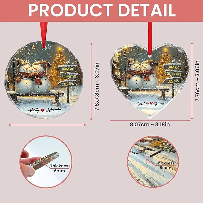 - ☃️ CELEBRATE LOVE: A romantic personalized glass ornament featuring two snowmen representing you and your partner — perfect for couples and newlyweds.