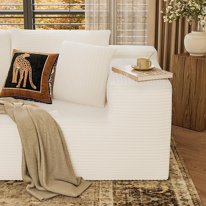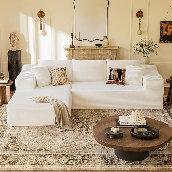 YESHOMY Sectional Couch, 108" Boneless Couches for Living Room, Modular Sectional Sofa with Deep Seat, Cloud Comfy Couch with L-Shape Chaise, No Assembly Required (Corduroy, Cream)