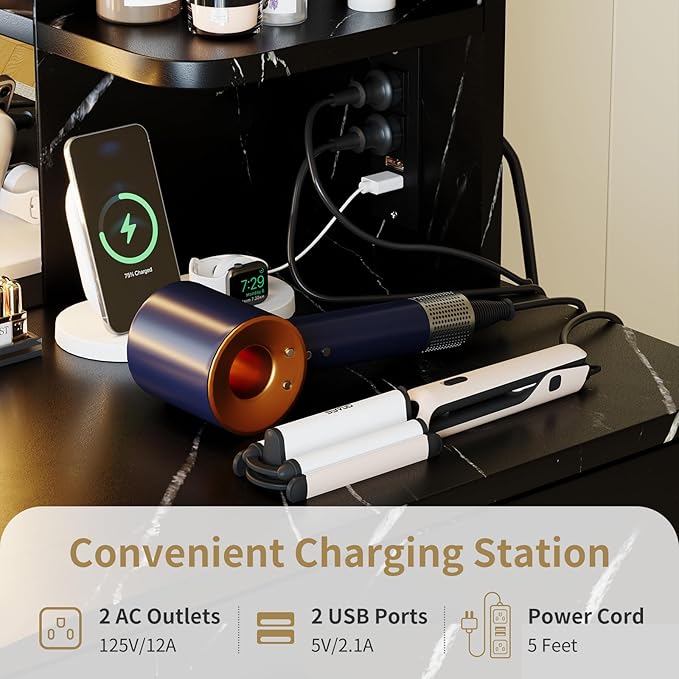 - Ample Storage Solutions: Includes a vanity storage drawer, shelves, and organizer compartments to keep your beauty essentials neatly arranged and easily accessible.
