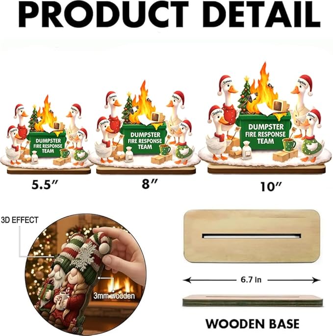 Funny Goose Dumpster Fire Response Team Wooden Plaque 2025, Personalized Flaming Dumpster Sign, Custom Name Group Plaque, Humorous Holiday Gift for Coworkers