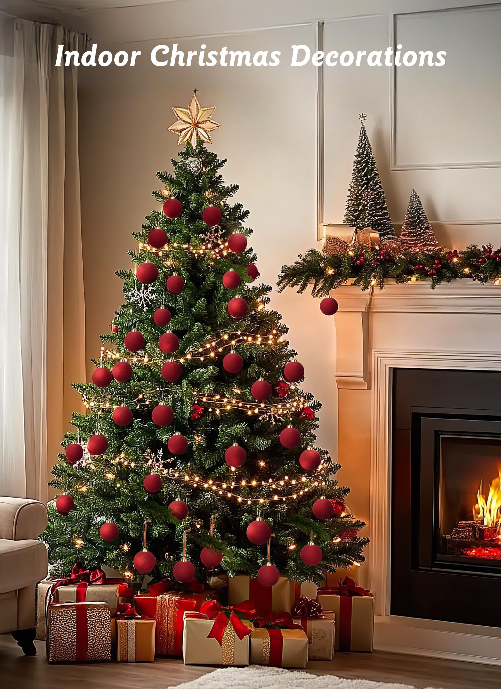 - [Versatile Home Decor] Velvet Ornaments Flocked Christmas tree ball isn't restricted to tree decorating, you can also apply the ball on doors, Christmas trees, windows, walls, and porch in your living room, bedroom, fireplace, and other places, ideal for birthdays, Halloween, Christmas, and other festivals. They're also ideal for special occasions such as weddings, engagements, anniversaries, parties, and as thoughtful gifts, adding a touch of festive elegance to any setting