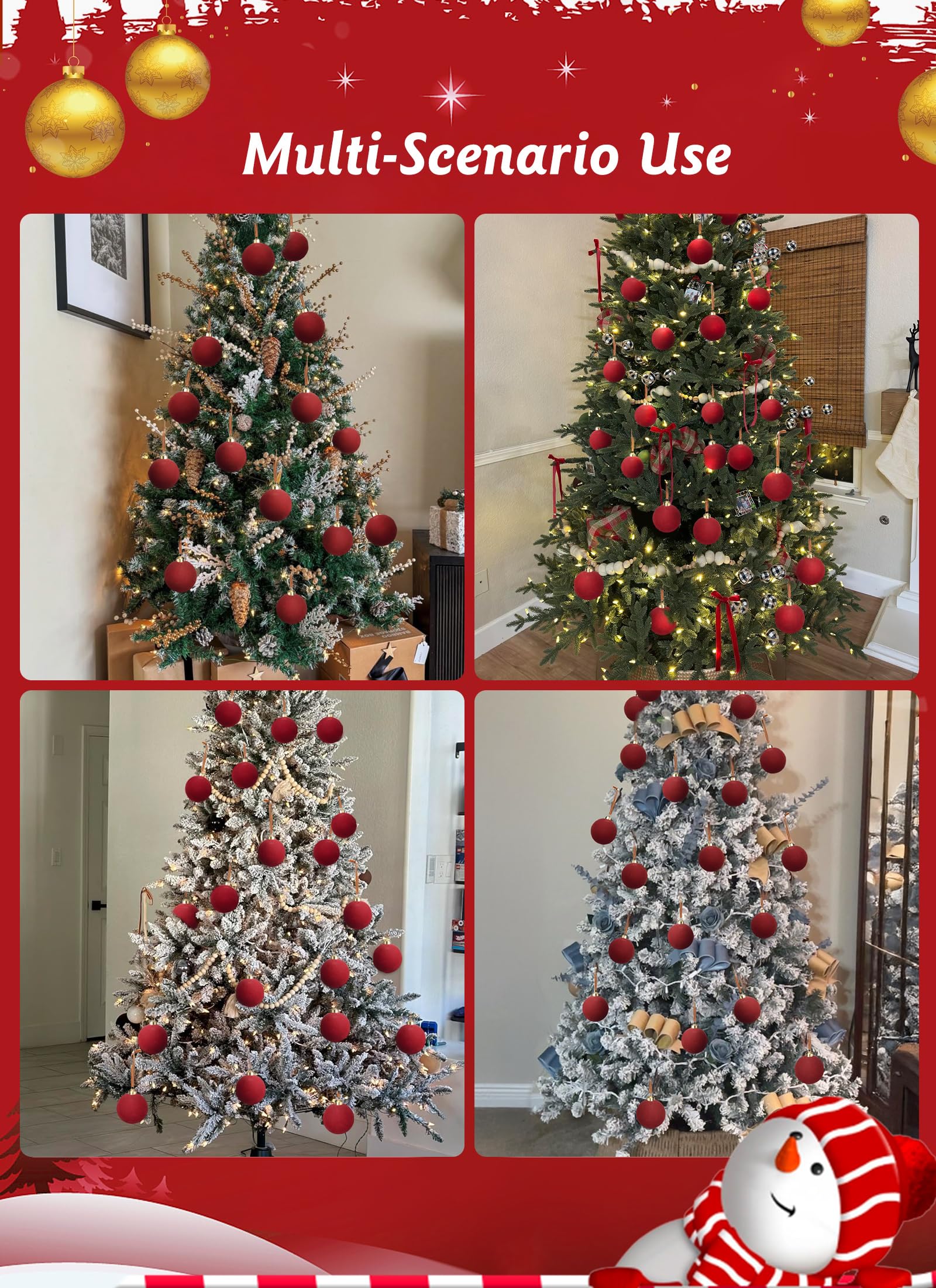 - [Quality Material] Christmas ornaments balls are made from quality velvet material, giving them an elegant look; The sturdy shatterproof construction of the Christmas balls ensures they won't break easily, providing you with a long-lasting and reusable Christmas tree decoration to enhance your holiday experience