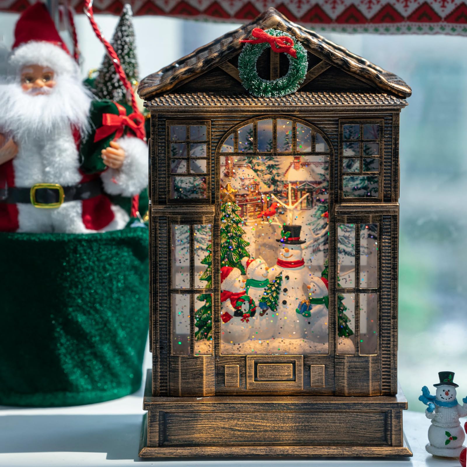 - 🎅🎄【Snow Globe Manger】The lovely snowman family design, When turned on a warm LED shines on the figurine and swirling glitter to gives our Christmas globe a whimsical look for the Christmas Holiday season.