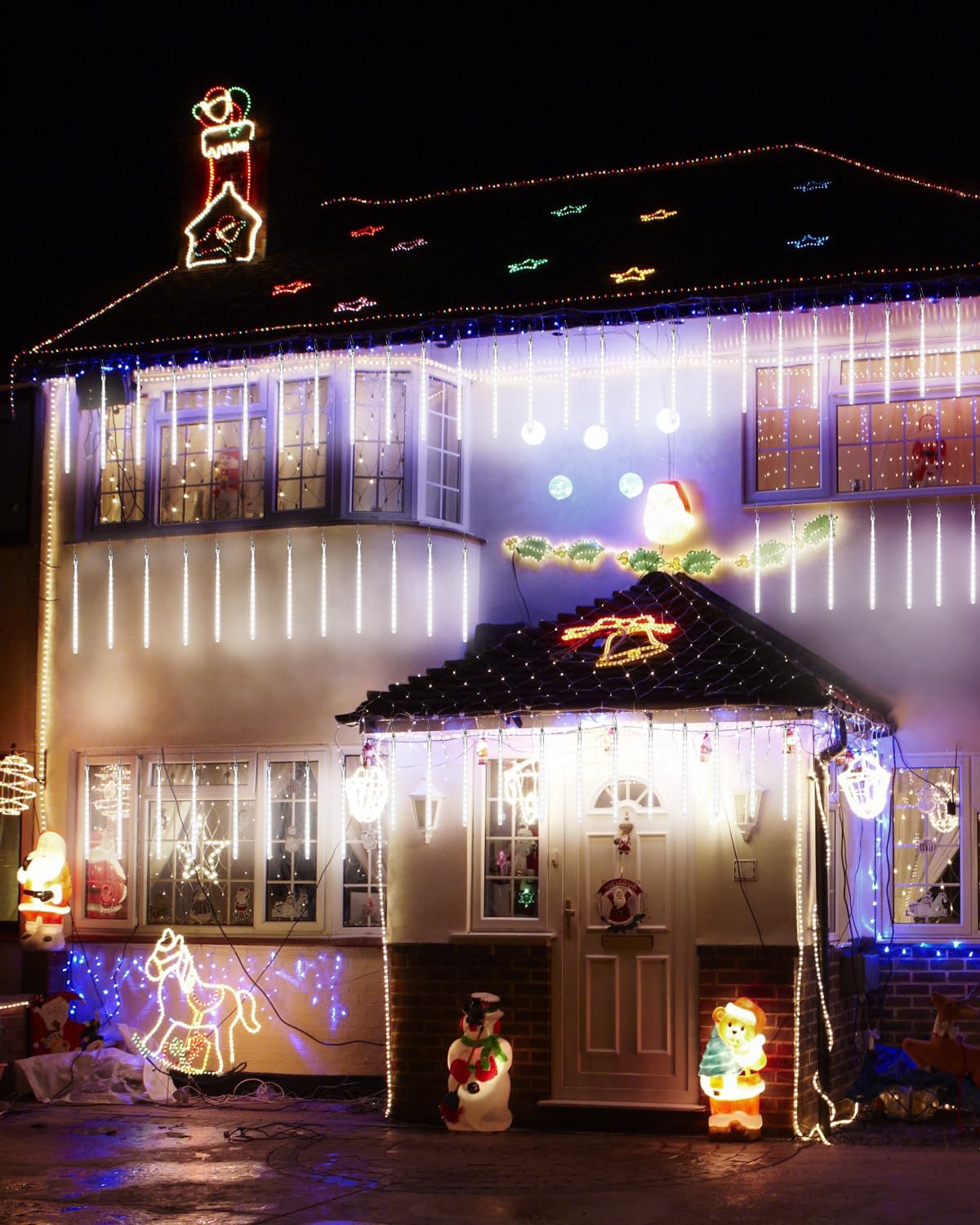 - Widely Use Meteor Lights: These meteor shower rain lights are a wide range of applications on architectural decoration, tree decoration, home decoration, etc. As cascading Christmas lights are perfect for Christmas, New Year, Wedding, Valentine's Day, Holiday, Thanksgiving Day, Birthday Party, Business Celebration, and any celebrating time. Suitable for Apply to Homes, Gardens, Lawns, Patios, Christmas Trees