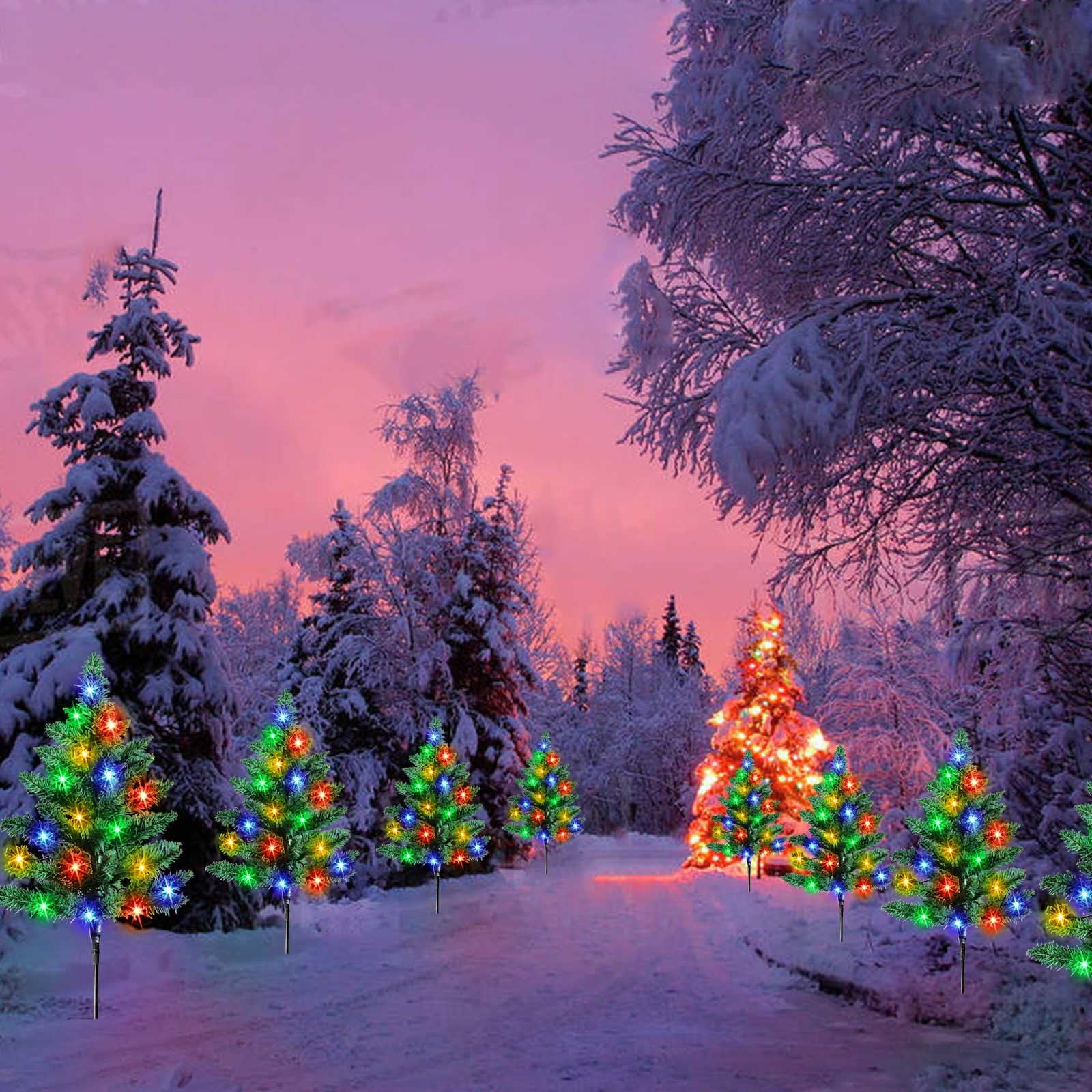 - 🎄【Solar Powered Christmas Tree】Set of 6 outdoor Christmas trees, comes with 120 LED Solar powered Christmas lights, waterproof for outdoor Christmas decorations. Perfect size small Xmas trees fit for front porch and yard space.