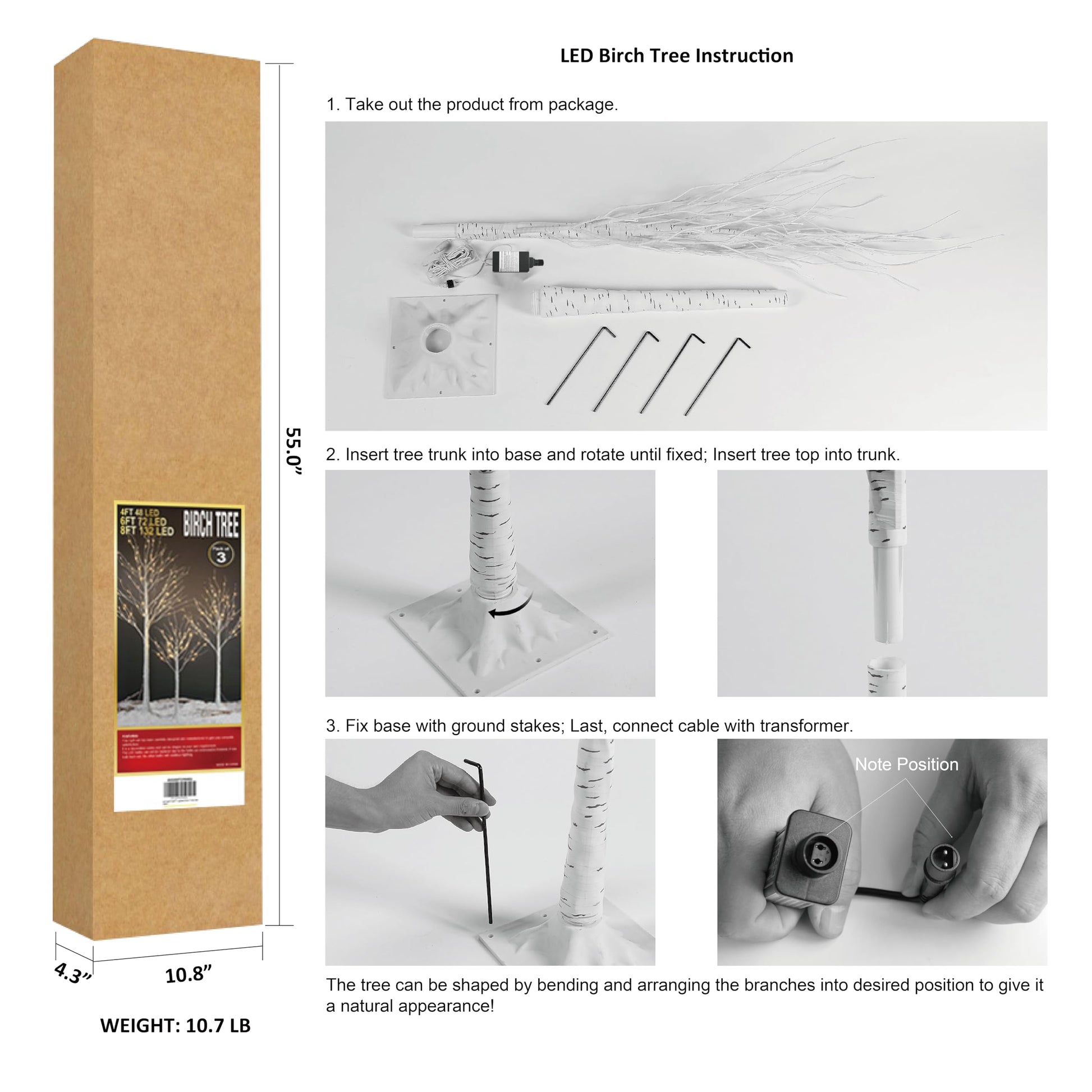 - [LED BIRCH TREE LIGHTS] Hand-painted birch bark texture throughout branches - superior to plastic-wrapped alternatives. Includes warm white lights and 16ft power cord.