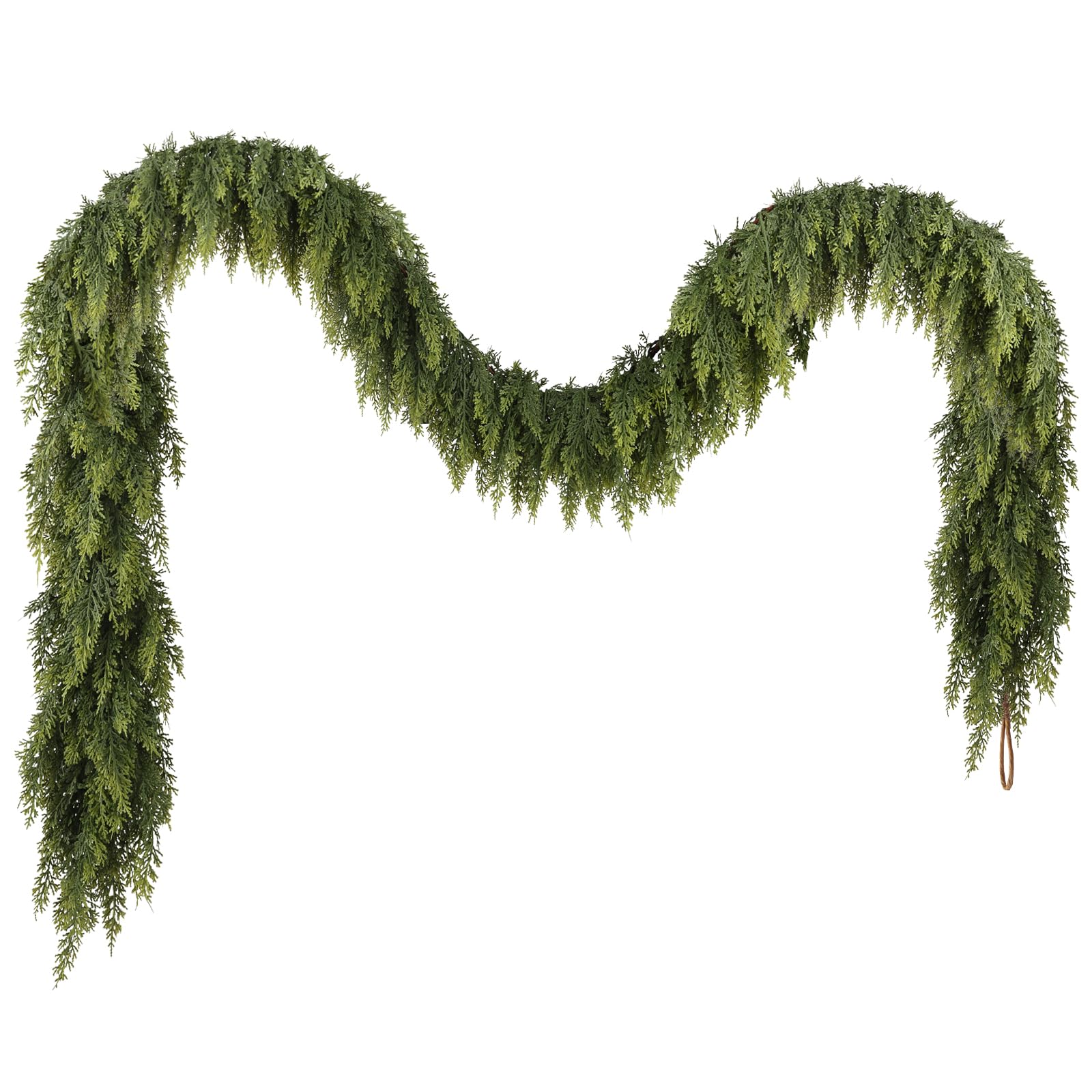 N&T NIETING 9ft Christmas Cedar Garland with Realistic Soft Thickness Pine, Artificial Green Faux Cedar Pine Garland for Fireplace Mantle Fireplace Indoor Outdoor Holiday Party Home Decoration
