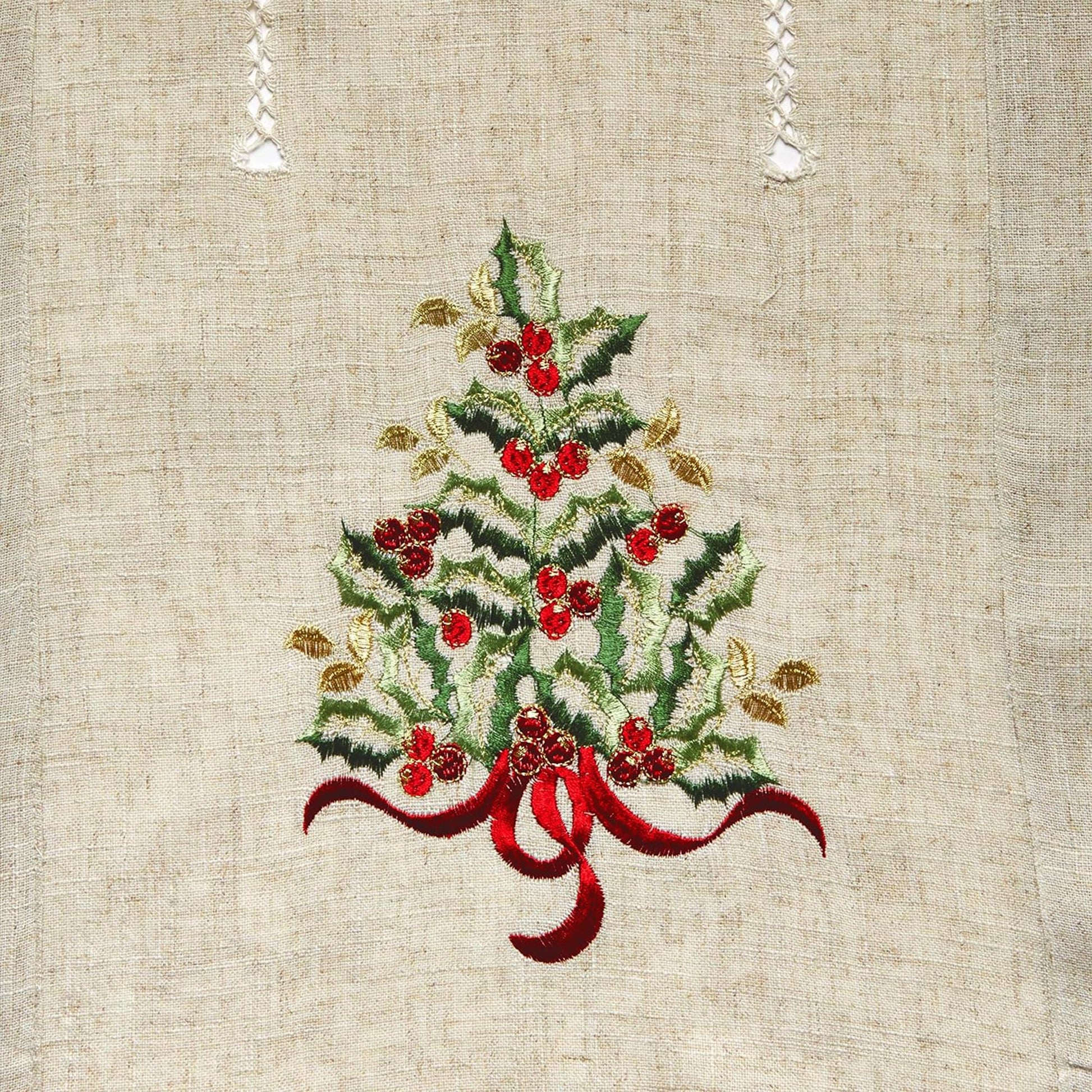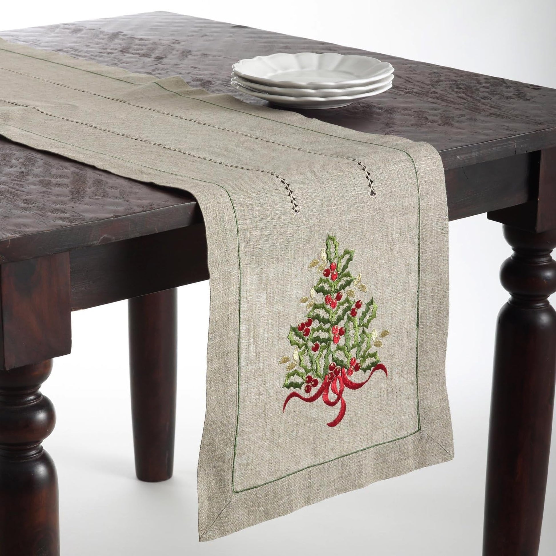 SARO LIFESTYLE 60041.N1654B Holly Collection Christmas Tree Embroidered Table Runner, 16" x 54", Natural