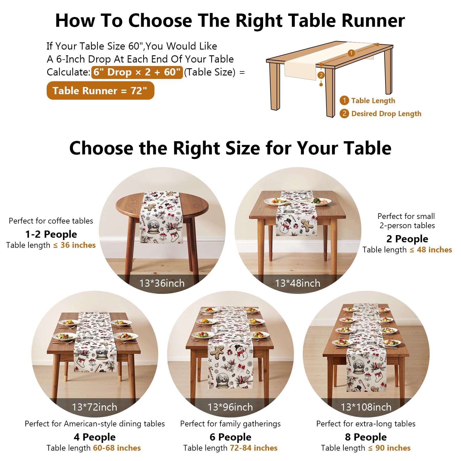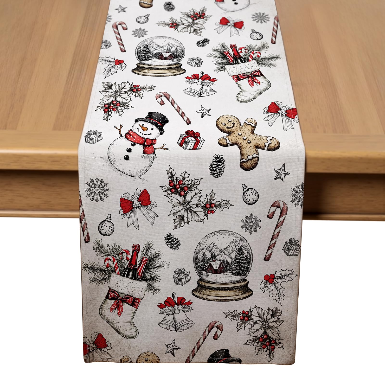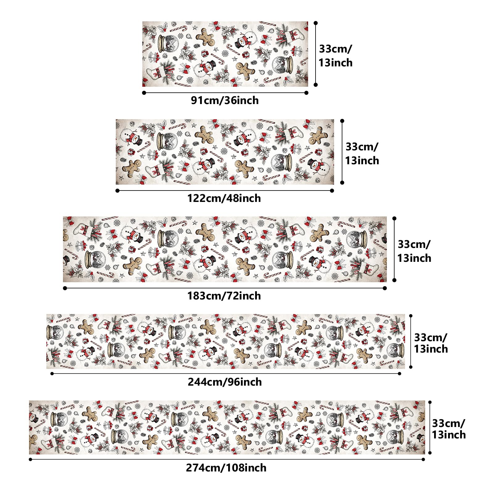 VIV CHERBL Christmas Table Runner with Snowmen, Gingerbread Men & Holiday Motifs, Table Decoration for Dining Party and Home Decor,72x13 inches